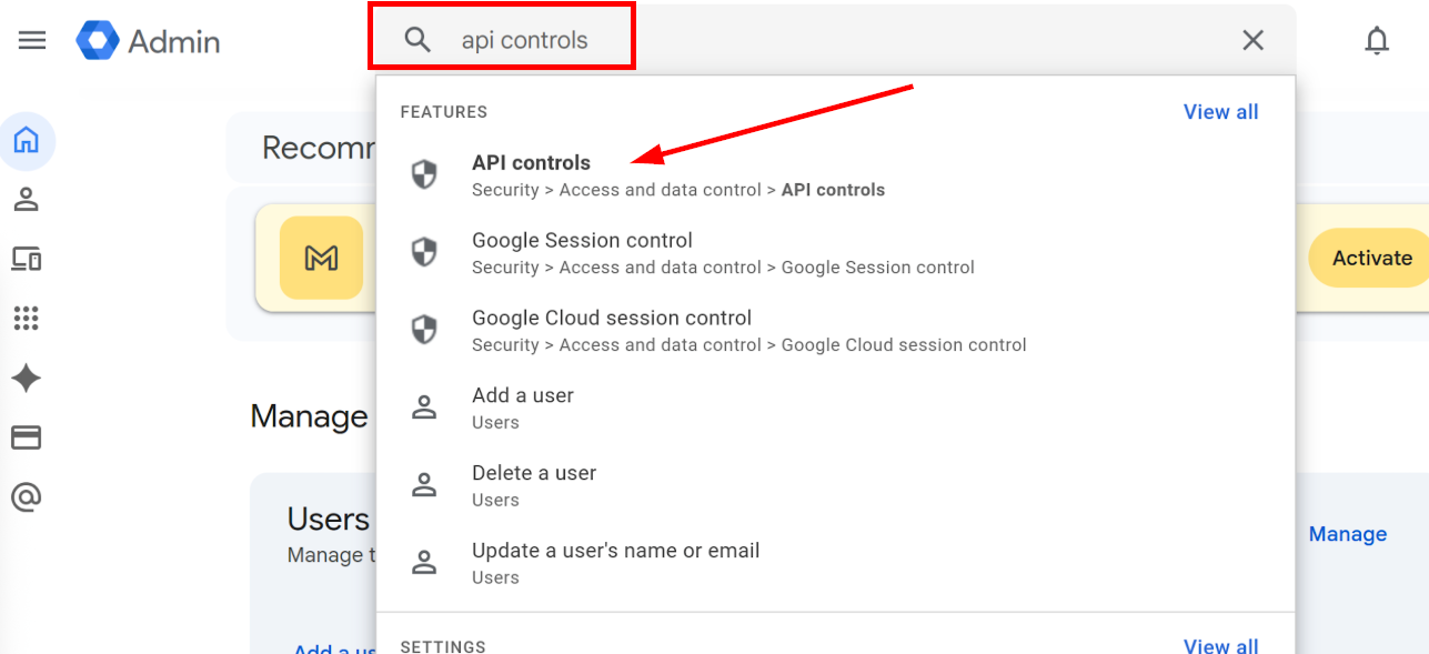 - Search for and select API Controls in the search bar at the top of the page