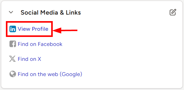 - Navigate to the corresponding Person's record and locate the Social Media & Links card