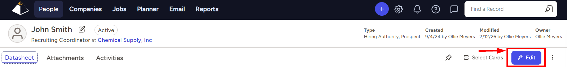 - Navigate to the corresponding Person’s record and click the Edit button at the top right of the page