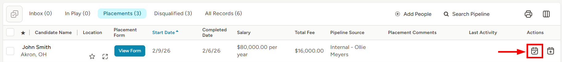 - Navigate to a Datasheet, Pipeline, or the Planner within TE Recruit