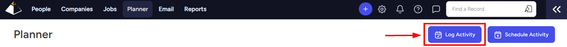 - From the Planner – click on the Log Activity button in the top right corner of the page