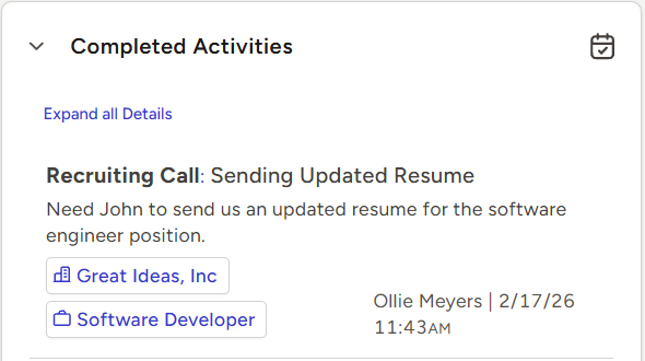 - Click here to learn more about viewing ALL Activities on a record