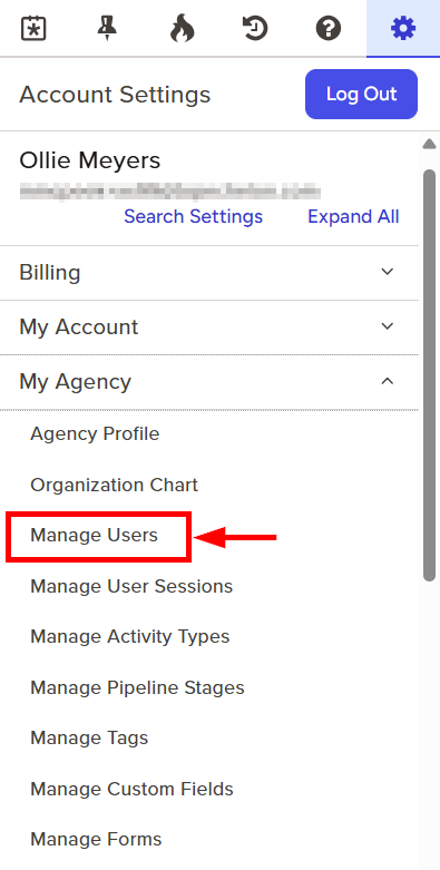 - Click to expand the My Agency section and then select Manage Users