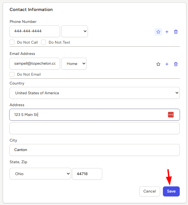 - After saving, you’ll notice that the record is immediately updated with your new change(s)