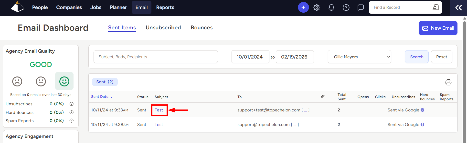 Forwarding an Email through TE Recruit gives you the ability to re-send a message that was previously sent out of the software. The forwarded message can be re-sent to the original recipient(s), or sent to a totally new recipient or list of recipients.