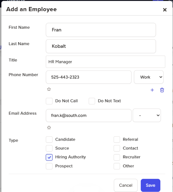 - From the Add an Employee window, start typing the person’s name to check for duplicates within your database