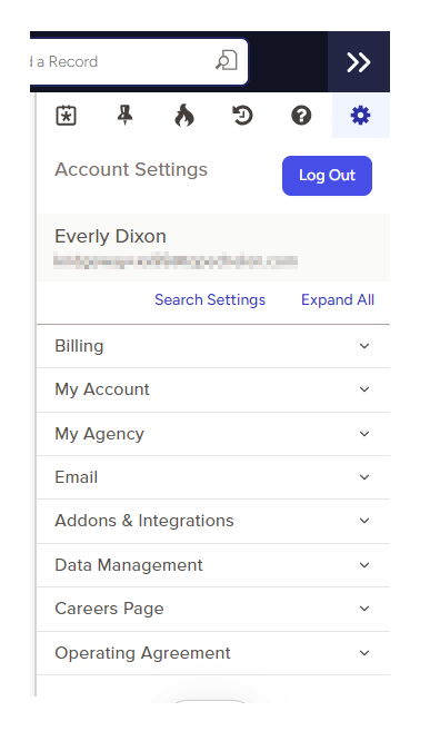 - Allows access to your Daily Agenda, Pinned Records, Hotlists, Recent Records, Help Center and Settings