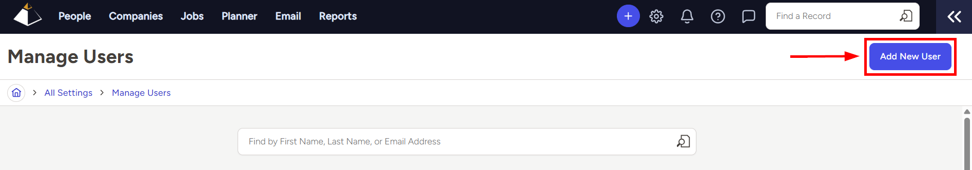 - Click the Add New User button in the top right corner of the Manage Users page