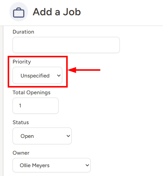 The Priority field on Job records is used to assign a level of importance to each of your Open Jobs. Importance can be determined by a number of factors, but may include things like potential revenue, how quickly the client is looking to fill the position, your overall relationship with the client, etc.