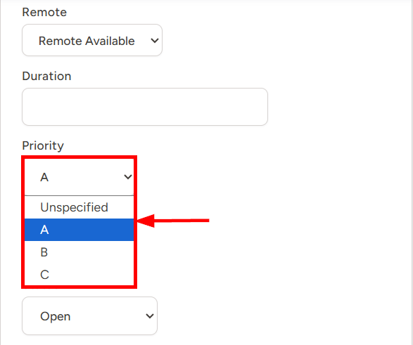 Adding a Priority to a Job allows you to designate it as an A, B, or C order with A being the highest level of importance. If no order priority is selected, this field will default to a priority of Not Specified.