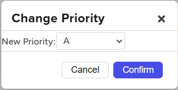 - Click to expand the Priority drop-down to assign A, B, or C