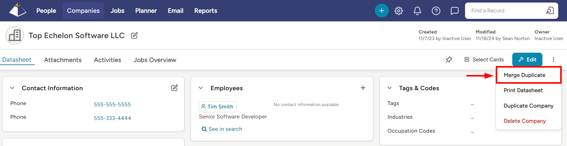 - Navigate to the duplicate Company’s Datasheet
