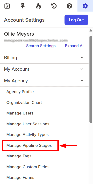 - Click to expand the My Agency section and then select Manage Pipeline Stages