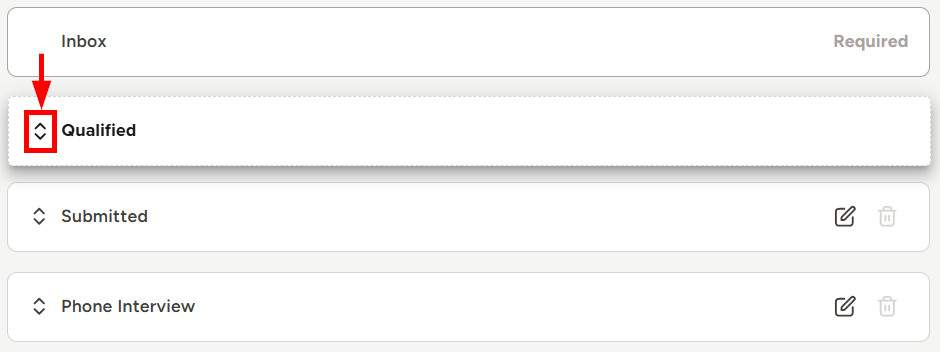 - Left-click and hold the icon to the left of a stage name to drag it to the appropriate place on the list