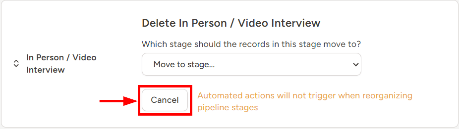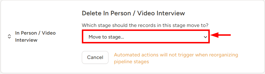 - If you have existing candidates in your database under that corresponding stage, you will need to decide which stage you wish to transfer those to