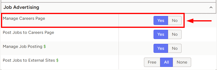 Note: the ability to set Careers Page management permissions is restricted to only those users that have permission to manage users.