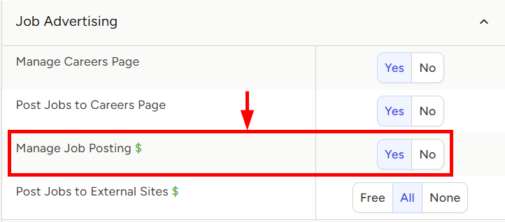 - To the right of Manage Job Posting, set the appropriate permission