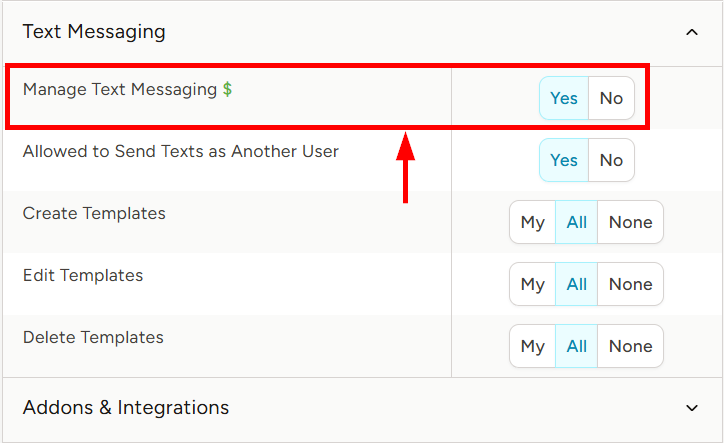 - To the right of Manage Text Messaging, set the appropriate permission