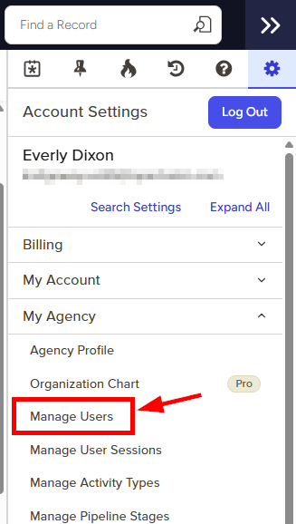 - Click to expand the My Agency section and then select Manage Users