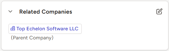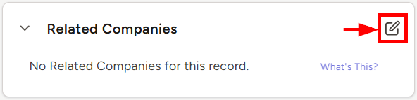 - Locate the Related Companies card and click the edit icon in the top right corner to inline edit