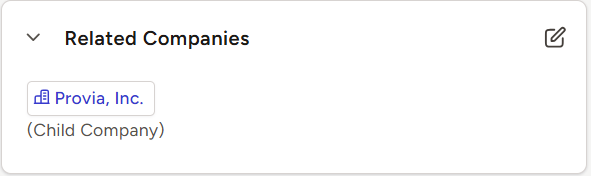 - You’ll now see the relationship within the Related Companies card on both the parent and the child record moving forward