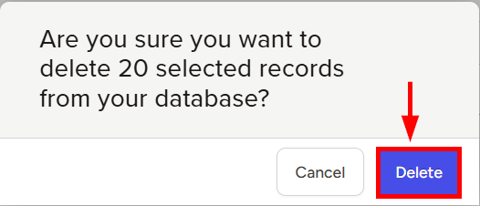 - Check the boxes to the left of those records you would like to delete, or select the top checkbox to select the entire page or list