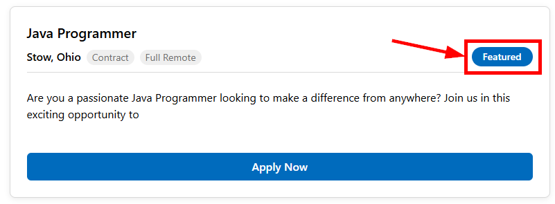 - Featuring a Job will also add a “Featured” tag to the right of the Job Title/Location