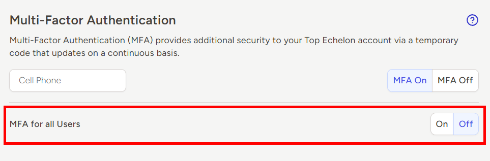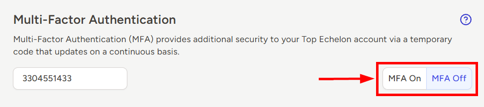 - After adding or confirming your cell phone number, click to turn the MFA toggle ON