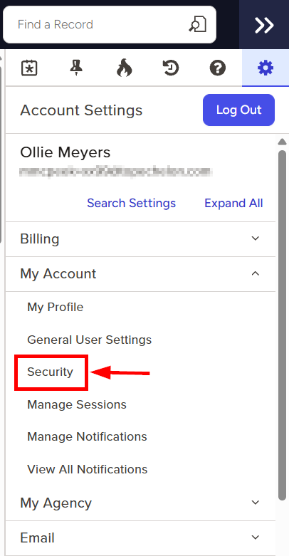- Click to expand the My Account section and then select Security