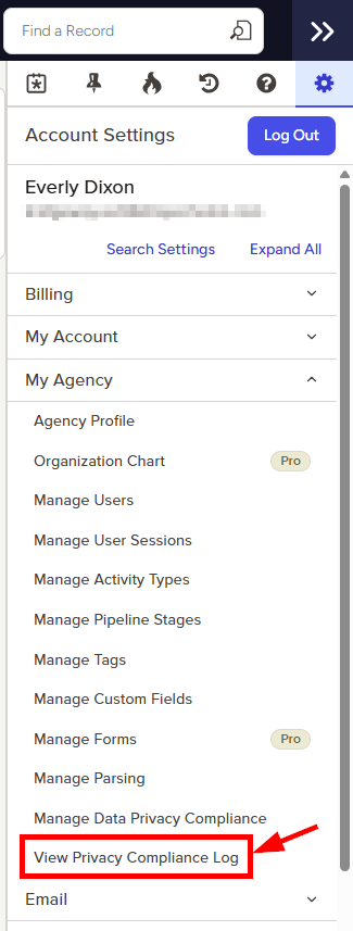 - Click to expand the My Agency section and then select View Privacy Compliance Log