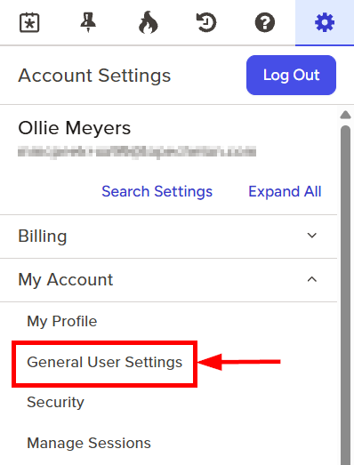 - Click to expand the My Account section and then select General User Settings