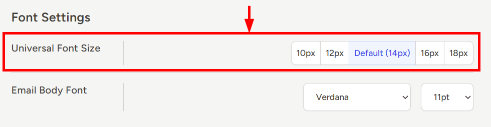 - From here, use the Universal Font Size toggle to select and adjust your preferred font size accordingly