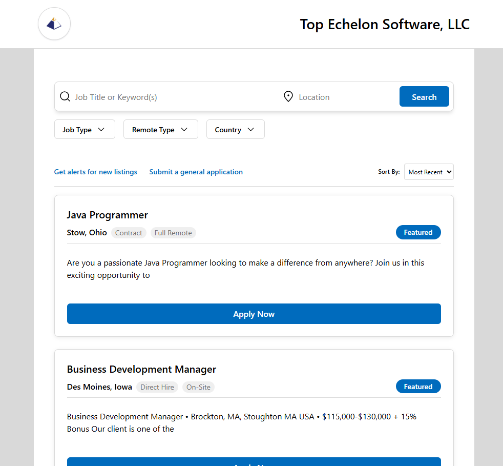 - Logo Upload: Upload your company's logo as you'd like it to be displayed in the top left corner of the Careers Page