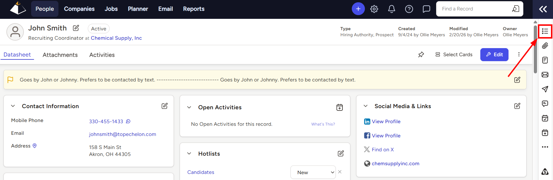 - Navigate to a Person, Company, or Job Datasheet