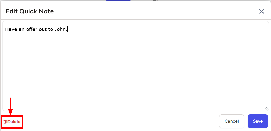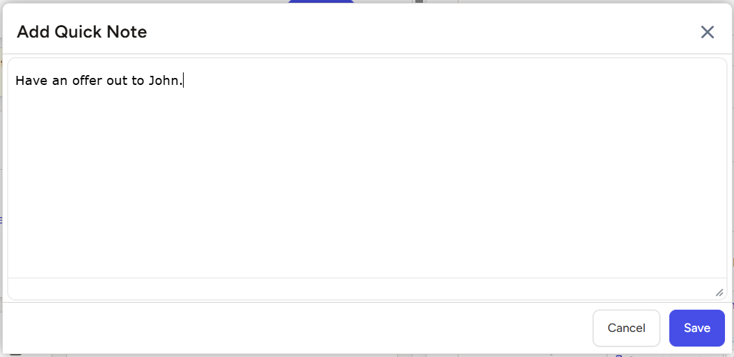 - The Add Quick Note window will open where you can log your corresponding details