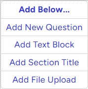- Click the Add Below button at the bottom of a Question