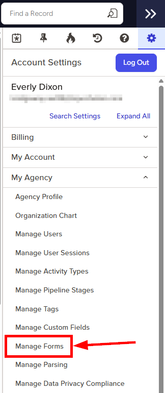 - Click to expand the My Agency section and then select Manage Forms