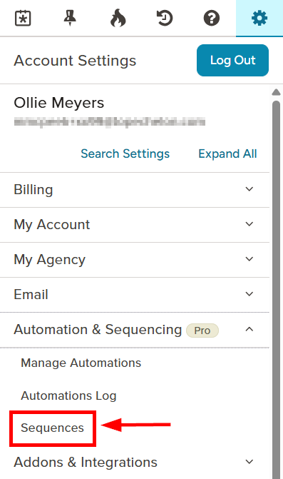 You can access Sequences from Settings, under the Automation and Sequencing section. From the Sequences page, you can view Sequences you’ve created, access ones shared by others in your agency, and begin building new ones.