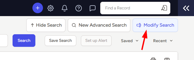 - You may also click the Modify Search button in the top right to add or adjust any other Search criteria